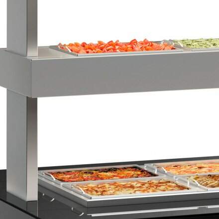 - Permite exposição simultânea de pratos quentes e frios em um só equipamento