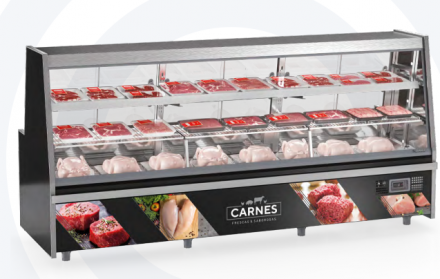 REF: 8006Desenvolvido para açougues, supermercados e casas de carnes, o modelo de 3 metros proporciona organização eficiente, melhor visualização dos produtos e praticidade no atendimento diário.
