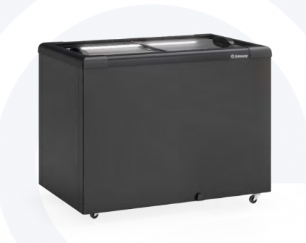 As tampas em vidro temperado deslizante e baixo emissivo reduzem a troca de calor com o ambiente, melhorando a eficiência energética e facilitando o acesso aos produtos. O colarinho em ABS com cabeceiras injetadas reforça a estrutura do equipamento, enquanto o revestimento interno e externo em aço pré-pintado, disponível nas cores branco ou preto, assegura durabilidade e fácil higienização.