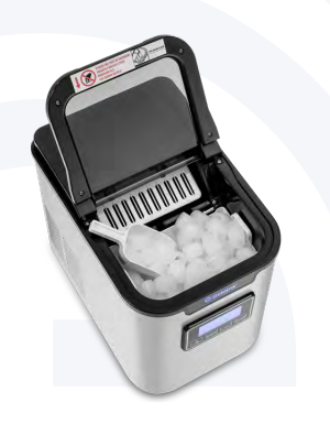 Equipada com sistema de refrigeração por compressor, garante produção eficiente de gelo. Possui display digital multifunções que permite: