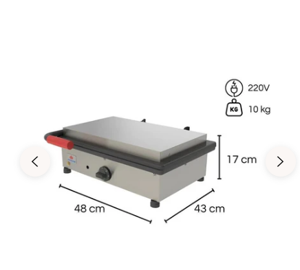 Com aquecimento elétrico de alta potência, o equipamento garante distribuição uniforme do calor em toda a superfície da chapa, proporcionando preparo ágil e padronizado dos alimentos. Seu controle de temperatura é simples e eficiente, permitindo ajustes conforme a necessidade de uso.